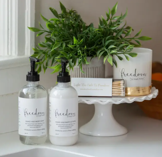 This uplifting Freedom Hand and Body Soap layers the aromas of soft tropical floral notes with hints of sea salt, jasmine, green leaves and tonka bean. This soap creates a rich lather that washes away impurities and leaves you clean and smelling fresh. Created in small batches by survivors of human trafficking in Sioux Falls, SD.