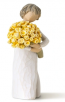 - Standing figure in cream dress, holding large bouquet of yellow roses in her arms