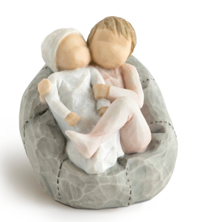 A gift to celebrate new beginnings, new babies, new families… and the loving relationships that develop between siblings, parent and child, grandparent and child… Willow Tree is a reminder of someone we want to keep close, or a memory we want to touch. Hand-carved figures reveal their expression through body gestures only… a tilt of the head, placement of the hands, a turn of the body. Each piece is designed to be open to interpretation from the viewer. “Willow Tree isn’t so much about the tangible piece. It represents an emotion, or it marks a memory.” –Susan Lordi. A gift of Willow Tree® communicates beyond words.