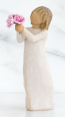 - Standing figure in cream dress, holding out small bouquet of pink peonies