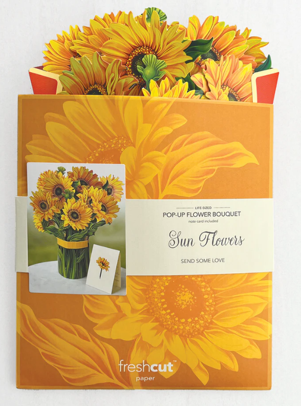 FreshCut Paper's cheerful Sunflower is a warm and inviting reminder of the sweet summer sun’s energy and life force. Our 3D pop up Sunflower is inspired by Vincent Van Gogh, our elevated design will lift the spirits and add a cheery splash of color that will never wilt. Perfect way to brighten a room without live flowers...especially for those with allergies, or in care where live flowers are not allowed.